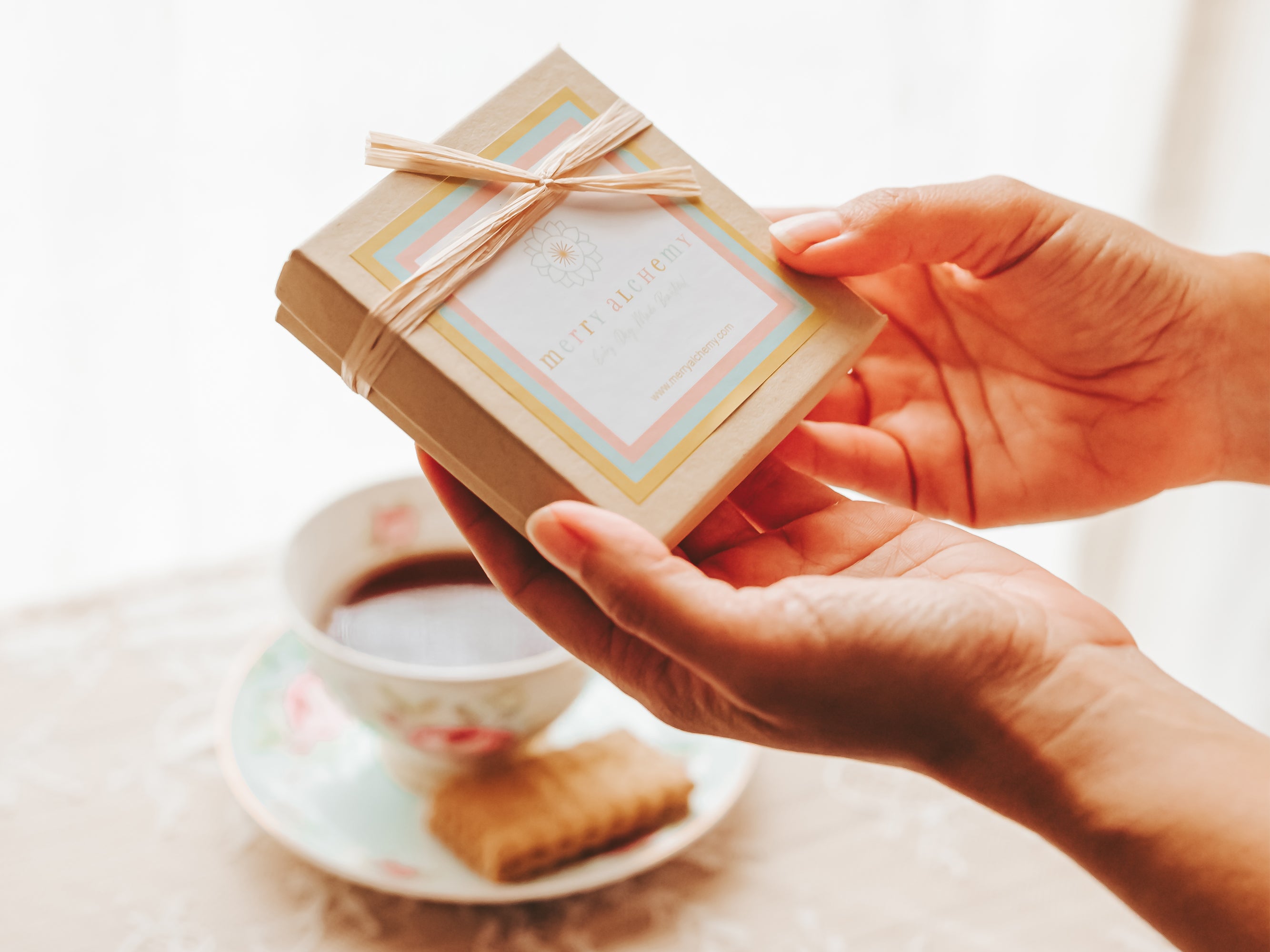 You will receive your jewelry in a luxe gift box that contains everything you need to get started harnessing the innate power of the crystals in your Merry Alchemy jewelry: instructions on how to cleanse and program your piece, a small bundle of white sage so that you can cleanse your piece regularly, a natural muslin bag to store your piece that will protect your bracelet and the positive energy you pour into it, as well as information on the special, metaphysical properties of each crystal in the jewelry you have purchased.