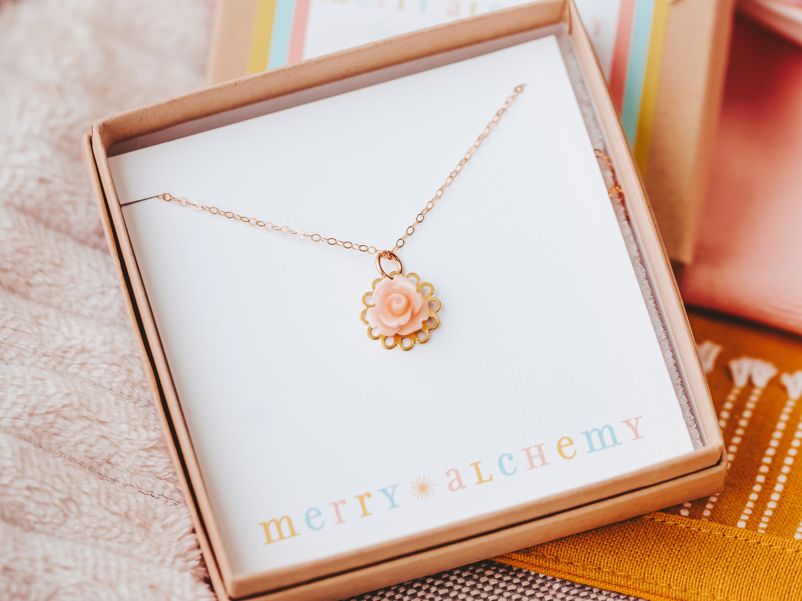 Single Blooms Necklace 20" in Matte Baby Pink Rose