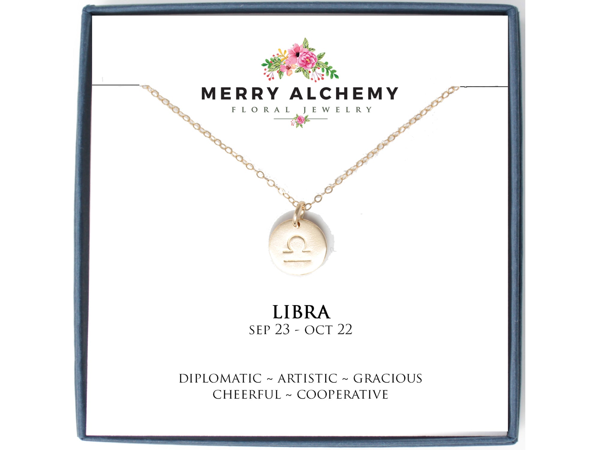 Celebrate your Libra girl with a classic, handmade zodiac necklace!This lovely gold fill necklace is attached to a card with the unique traits of Libras. So you are gifting something not only beautiful and well-made,...