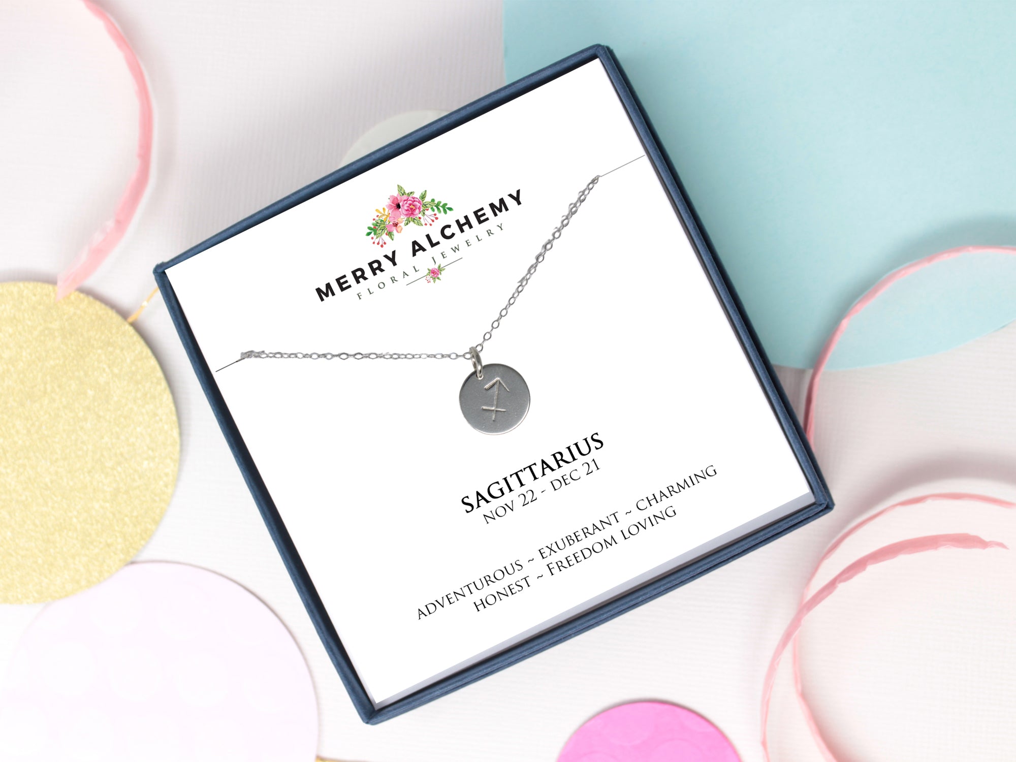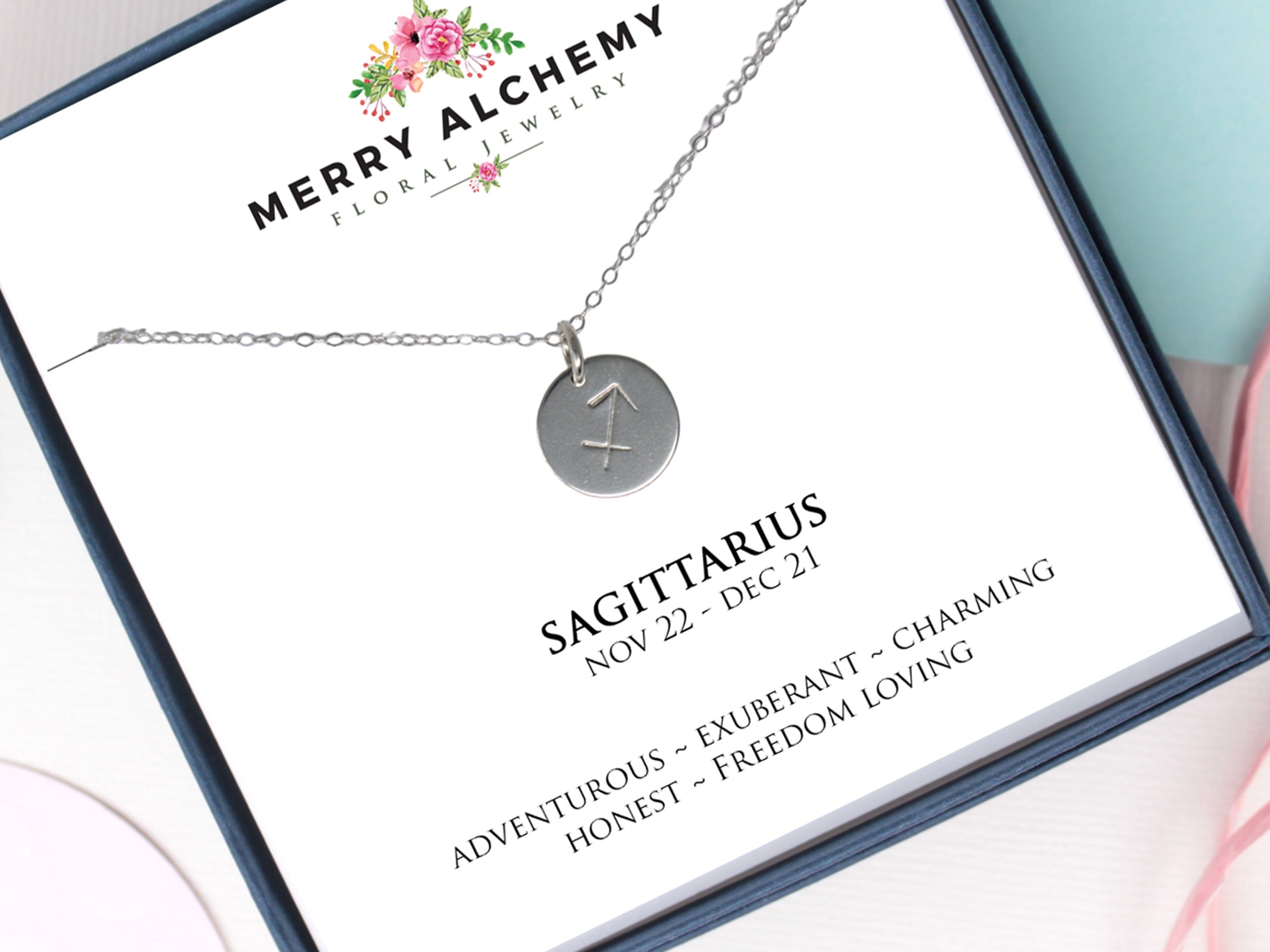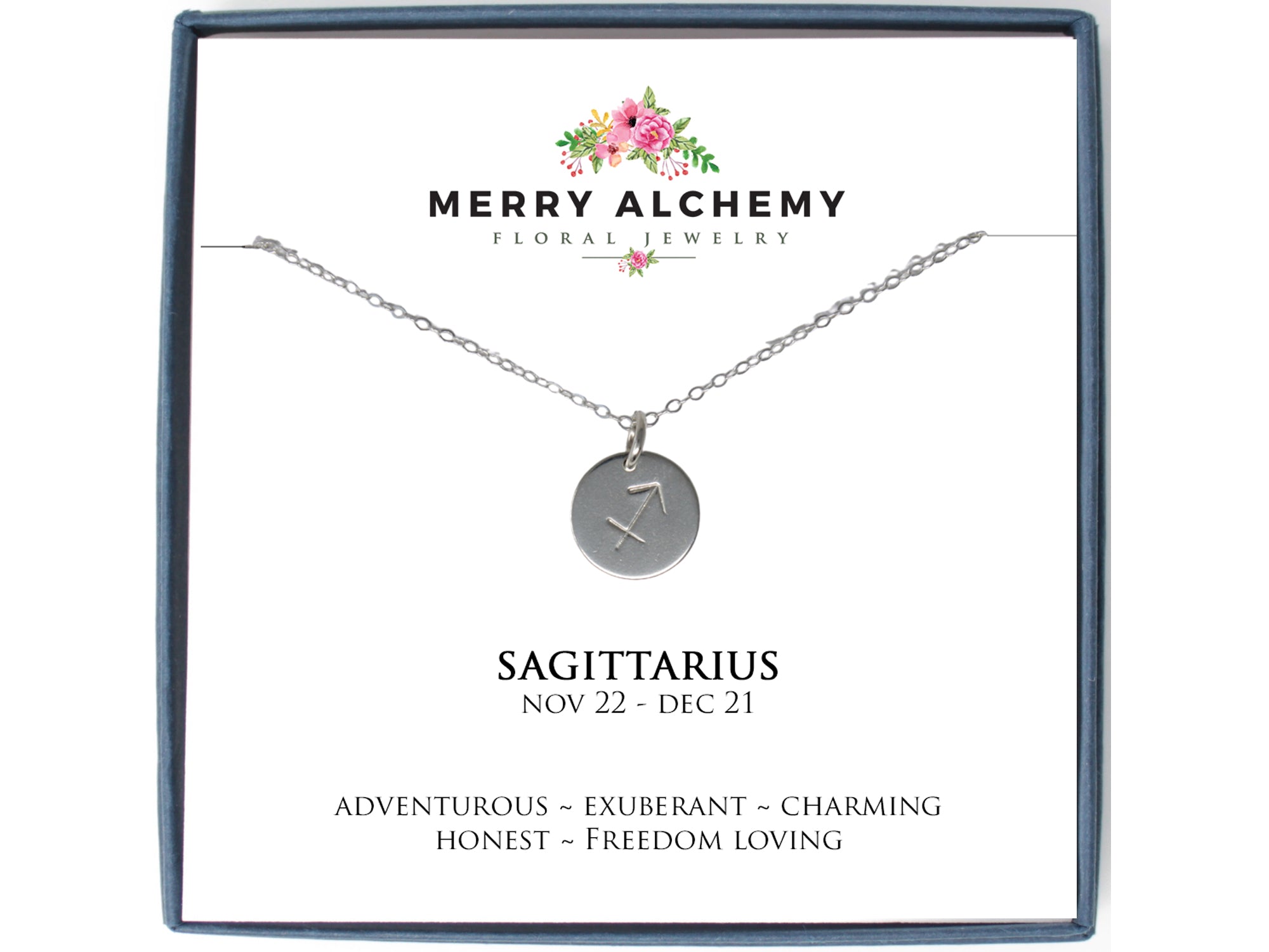 Celebrate your Sagittarius girl with a classic, handmade zodiac necklace!This lovely sterling silver necklace is attached to a card with the unique traits of the Sagittarius girl. So you are...